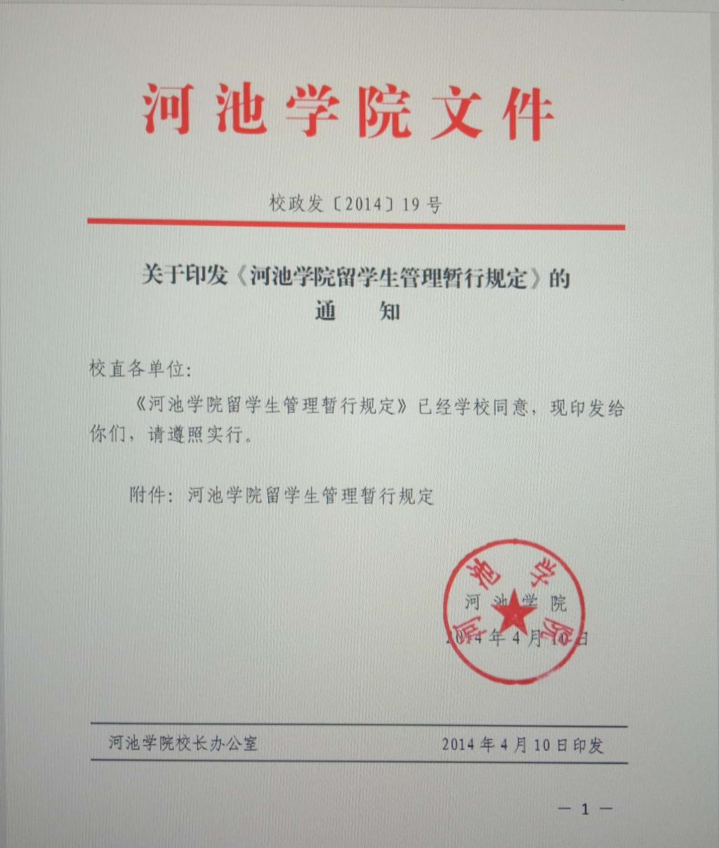 Regulations of Hechi University on Administration ofInternational StudentsChapterⅠ General ProvisionsArticle 1 These Regulations are formulated in accordance with Education Law of the People's Republic of China, Higher Education Law of the People's Republic of China , Regulations of the People’s  Republic of China on Administration of the Entry and Exit of Foreigners, Regulations on Higher Ed...