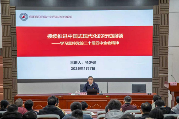 为推动党的二十届四中全会精神在基层单位落地生根、入脑入心,引导广大师生准确把握全会核心要义与实践要求,1月7日,学校校长马少健以“接续推进中国式现代化的行动纲...