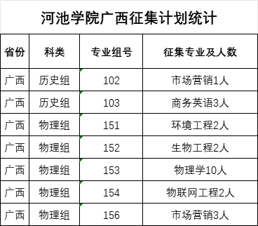 河池学院广西普通本科批征集计划统计