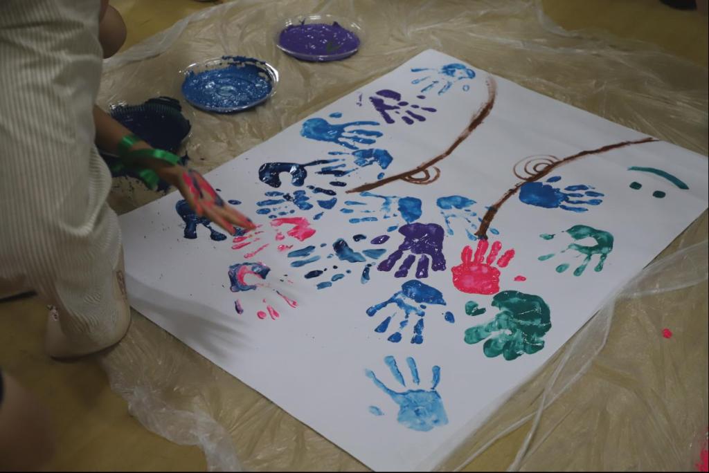 在接下来的合唱环节中,全体同学齐声高唱《我相信》,嘹亮的歌声将活动推向高潮。这首充满力量的歌曲不仅冲淡了离别的伤感,更激发了大家对未来的信心与希望。歌声结束后,同学们用手掌蘸取颜料,共同创作了一幅象征团结与韧性的“朋辈之树”,每一片手印都代表着彼此的支持与承诺。