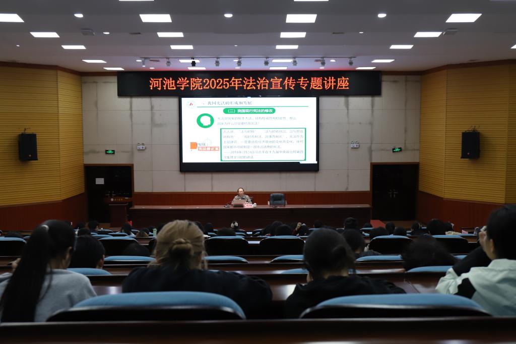 今年12月4日是第十二个国家宪法日。为加强宪法宣传教育,11月26日在东校区弘毅楼1-205报告厅开展了法治宣传讲座,学生工作部(处)长韦少雄就维护宪法权威专题进行了讲解,各二级学院、校团委各组织以及各社团成员代表共计260余人聆听讲座。