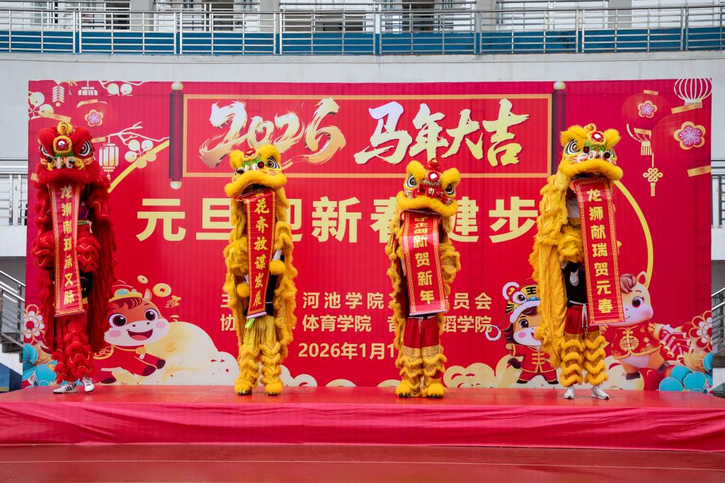 打卡完成后,丰富多彩的文体表演拉开帷幕。朗诵《喜迎元旦,共谱华章》以铿锵话语传递新年期盼,用赤诚心声展现奋进豪情;歌曲《春风十万里》携着暖意登台,用灵动的旋律诉说新春的故事;八段锦健身运动展示环节,动作舒展柔和,大家整齐列队跟练,尽显传统健身功法的独特魅力;舞狮表演更是将现场气氛推向高潮,掌声与欢呼声交织成新年最美的旋律,精彩的表演为元旦佳节增添了浓厚的文化气息。