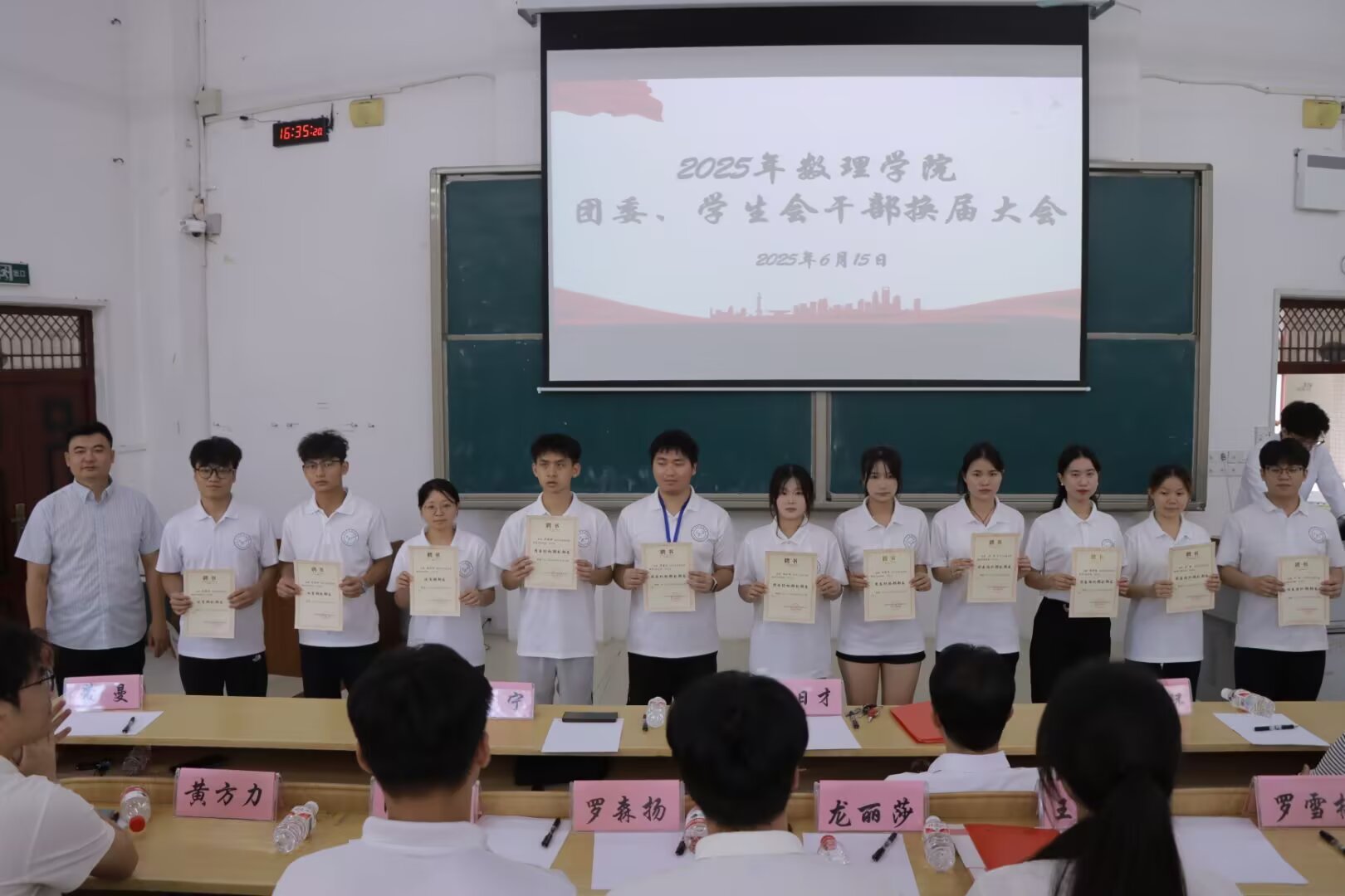 此次换届大会标志着数理学院团学工作迈向新阶段。未来,新一届团委、学生会将以更饱满的热情和更务实的作风,携手全院师生共创发展新篇章。(作者:叶茂宇 摄影:姚登勋 赵森 校对:石宁 审核:罗日才)