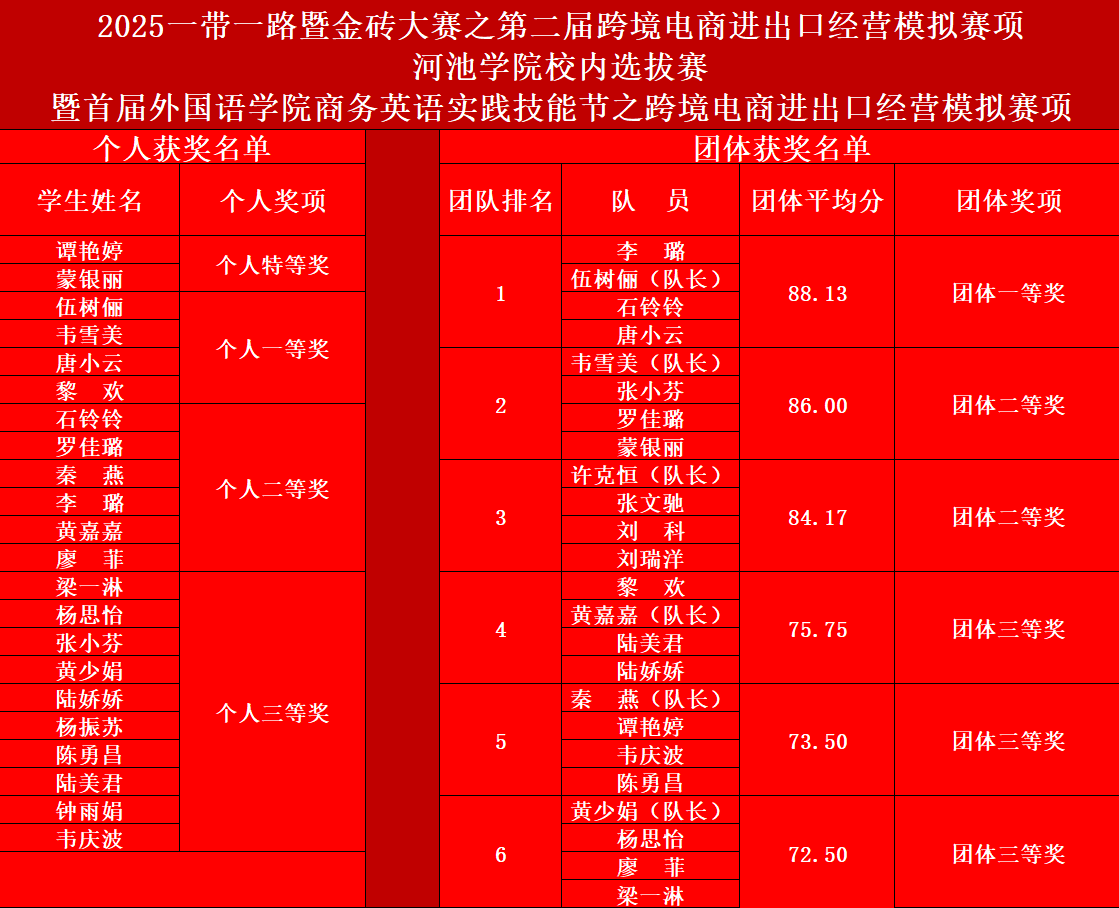 4月26日下午,外国语学院举办2025“一带一路”暨金砖国家技能发展与技术创新大赛(简称金砖大赛)之第二届跨境电商进出口经营模拟赛项校内选拔赛,该赛事同时也是外国语学院首届商务英语实践技能节赛项之一。来自22级、23级商务英语专业和泰语专业的26名选手参加了比赛。历经两小时角逐,决出了团体一、二、三等奖共6项,个人奖若干,最终选拔出四支团队参加即将到来的全国选拔赛。