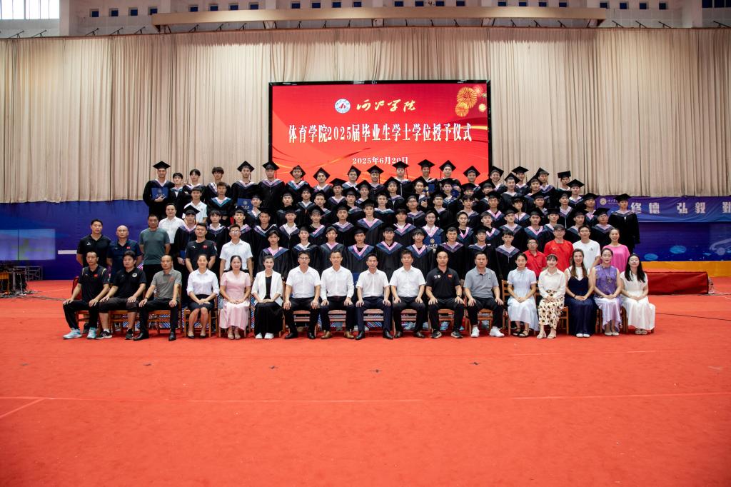 6月20日下午,体育学院在体育馆举行2025届毕业生学士学位授予仪式,体育学院领导班子、各教研室主任、辅导员及毕业班班主任出席仪式并在主席台上就坐,全体2025届获得毕业的毕业生参加仪式,仪式由体育学院党委副书记韦宝主持。