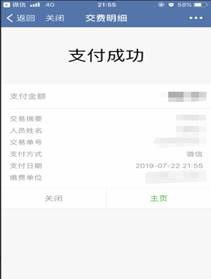 支付完成后,显示如下图所示的缴费成功页面。如果看到待支付金额减少说明交费成功。缴费成功后,请自行截图保存。