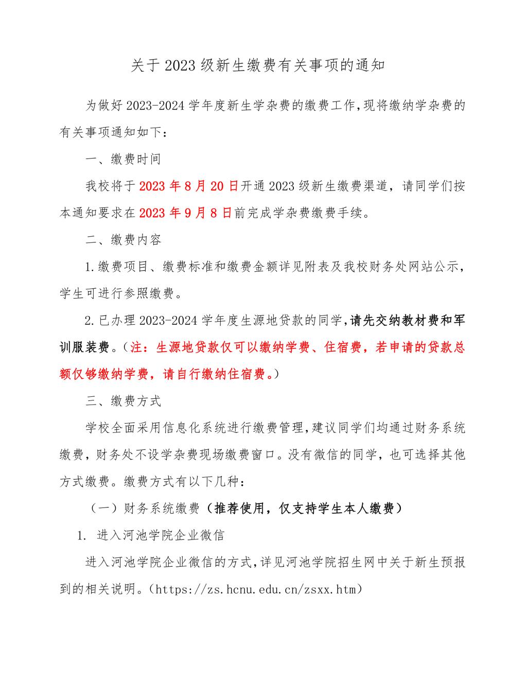 关于2023级新生缴费有关事项的通知