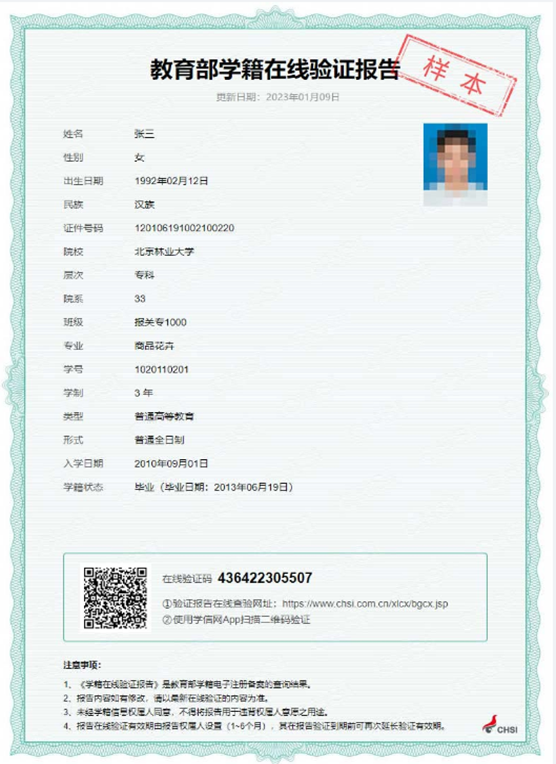 (教育部学籍在线验证报告示例)