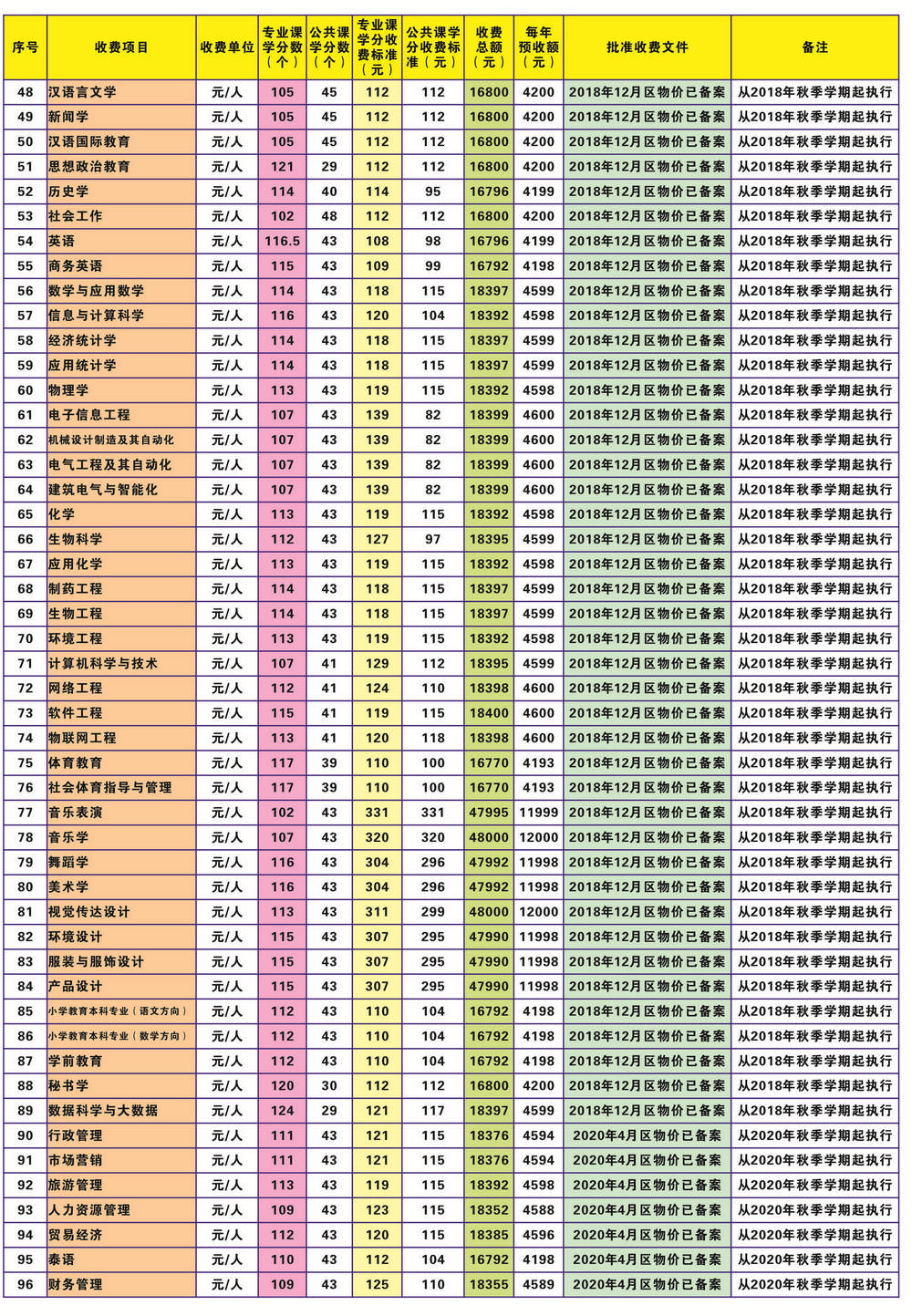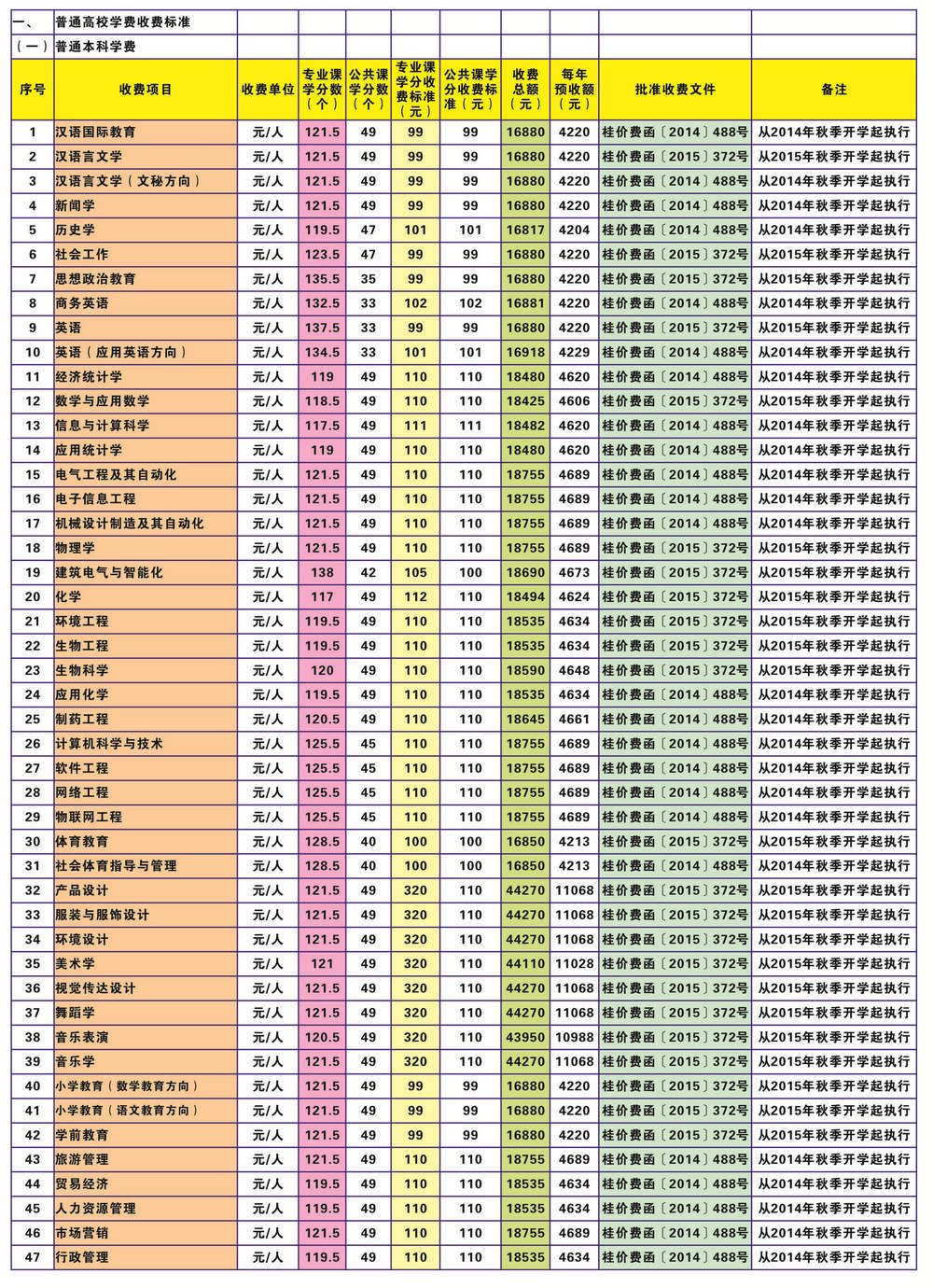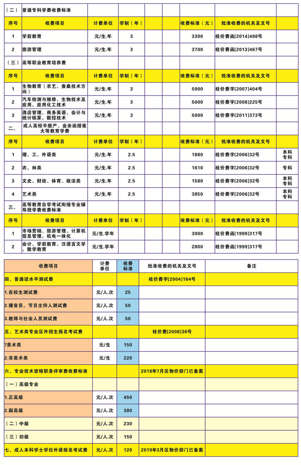 河池学院收费公示(2020版)