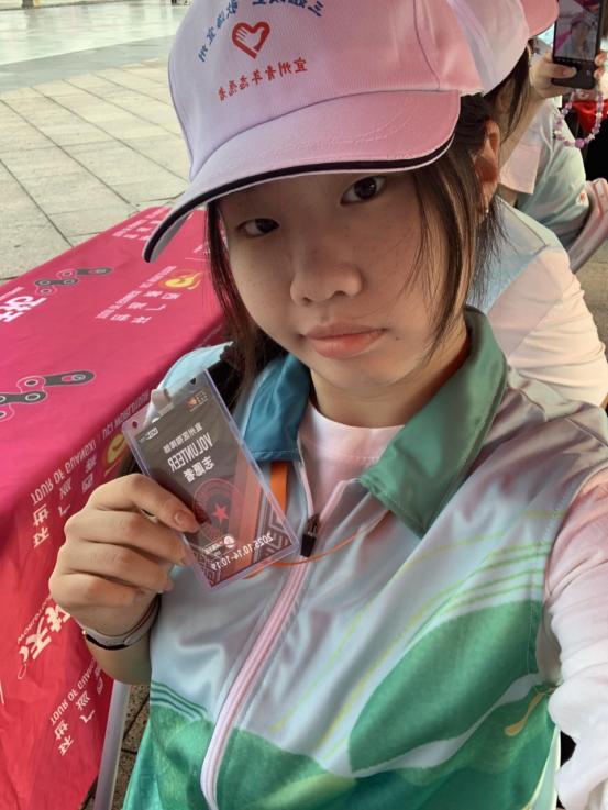 我加入了城区志愿服务的销售部,核心任务是和小组伙伴一起引导观众扫码填写调查问卷,并为完成填写的观众赠送定制头巾。起初我满心忐忑,生怕观众因专注赛场赛事而拒绝配合,没想到大家都格外热情。有资深骑行爱好者填写完后,还主动和我们交流赛事周边消费的需求建议;遇到不会操作手机的长辈,我们协助完成扫码,全程满是温暖的互动。我和伙伴们分工协作、及时补充分发物资,高效完成了任务,我的沟通能力和应变能力也得到了实实在在地锻炼。当看到手中的头巾全部送完,问卷收集成果满满时,我深切感受到,每一个人都可以努力把点滴行动奉献到集体事务中,并感到成功的喜悦。