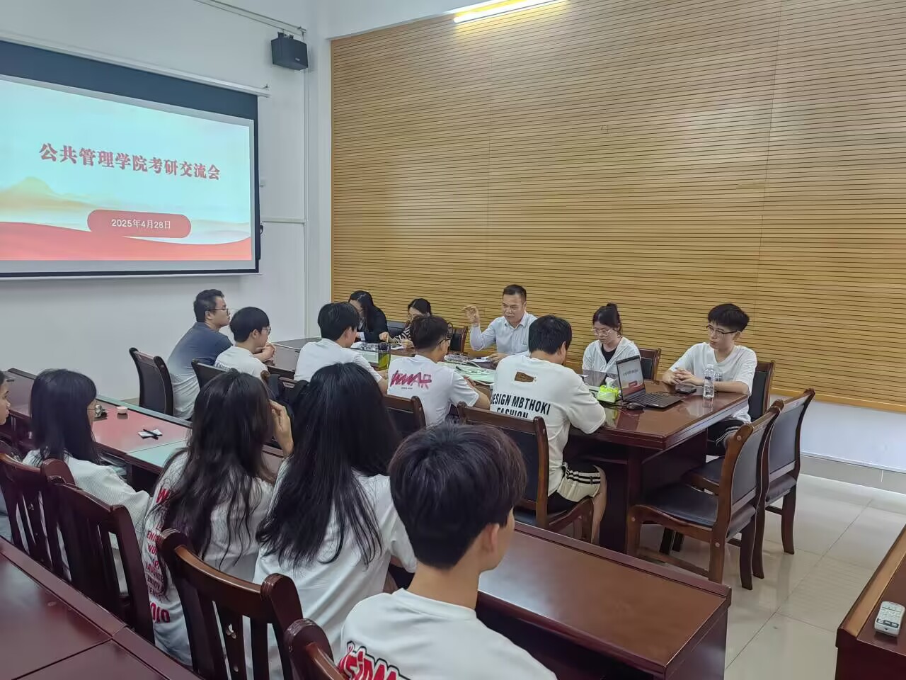 4月28日,公共管理学院在弘毅楼2-409会议室举行2025届考研培训与经验交流活动。学院副院长(主持行政工作)钟卓良、历史教研室副主任罗小芳以及历史学专业2025届考研同学参加活动。活动由学院团委书记覃露兴主持。