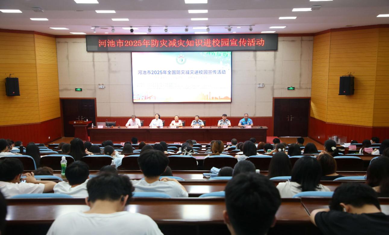5月14日,我校联合河池市安全生产和应急管理委员会、河池市应急管理局、河池市消防救援支队、河池市红十字会、中国移动河池分公司,以及宜州区应急管理局、宜州区消防救援大队,共同开展2025年防灾减灾知识进校园宣传活动。学校保卫处、学生工作处、后勤管理处和各二级学院近300名师生参与。