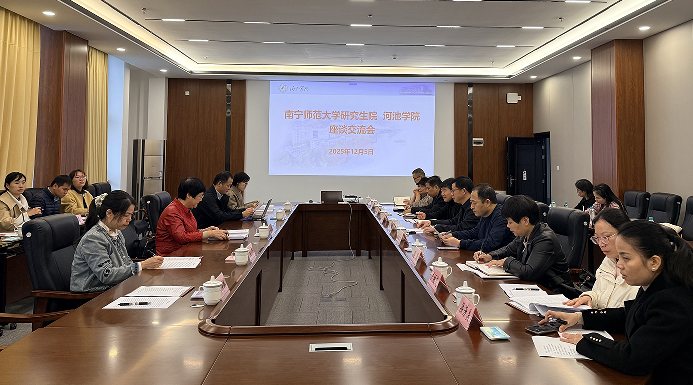 会上,双方围绕“硕士学位点申报填报经验”“河池学院预申报硕士学位点二级学院简况表优化”“毕业生就业工作推进”三大核心议题展开研讨,河池学院相关二级学院院长及学科带头人结合自身实际提出硕士点建设中存在的问题,南宁师范大学团队结合工作案例逐一回应,现场交流氛围热烈。