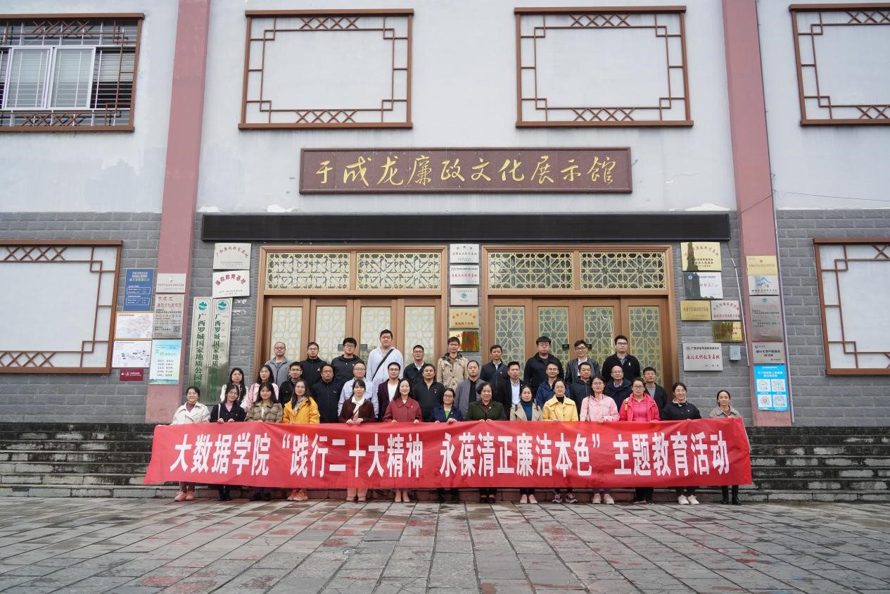 11月16日下午,大数据与计算机学院全体教职工前往罗城于成龙廉政文化馆开展“践行党的二十大精神 永葆清正廉洁本色”主题教育活动,学院党委书记魏菱、院长何奇文带队学习。