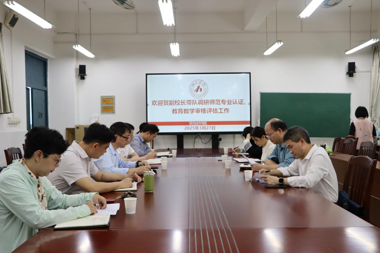 为扎实推进本科教育教学审核评估和师范类专业认证迎评促建工作,3月27日,副校长贺卫国带领教务处、发展规划与评估中心负责同志到相关二级学院开展调研。