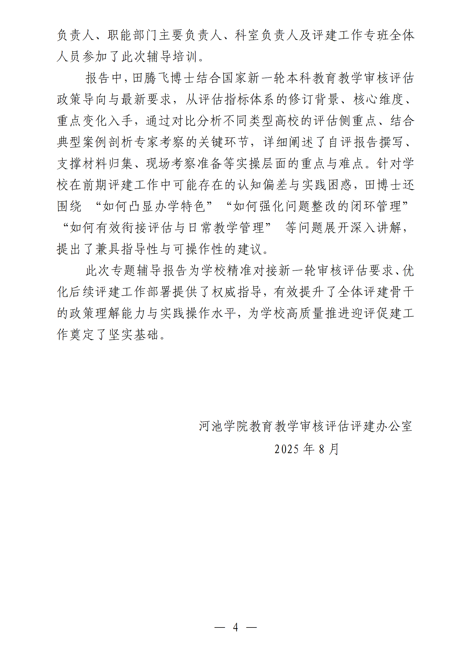 河池学院本科教育教学审核评估专项工作简报第六期
